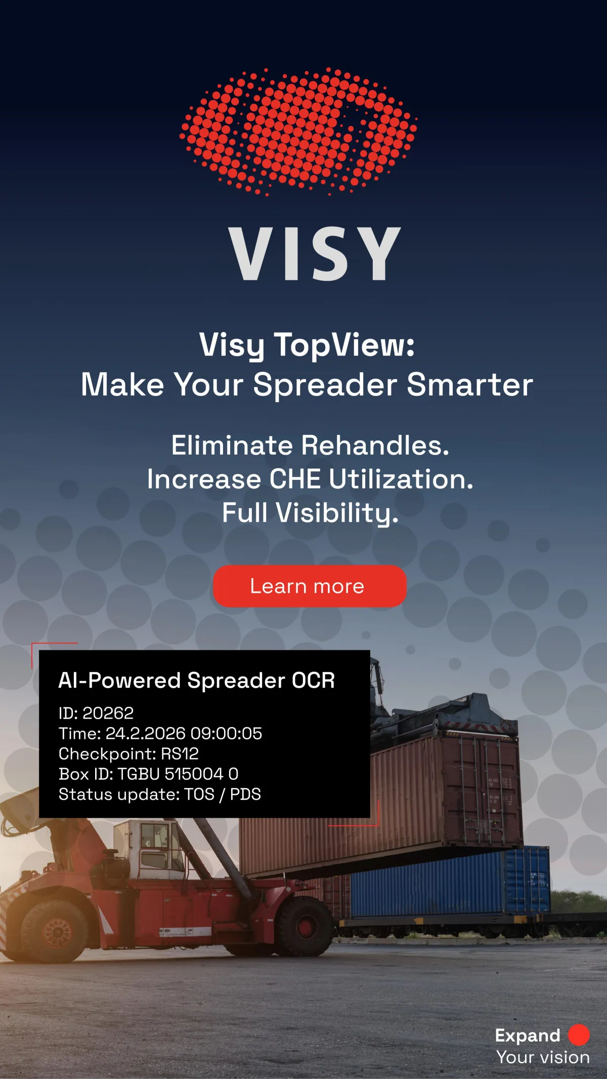 Visy provides process automation ecosystems to manage the flow of traffic, cargo and personnel in ports, terminals, and logistics centers. Every asset that goes in or out of a facility, whether by road, rail, or quay, can be managed by Visy technology. Visy’s mission is to help its customers save time and money on each transaction, therefore improving operational KPIs.